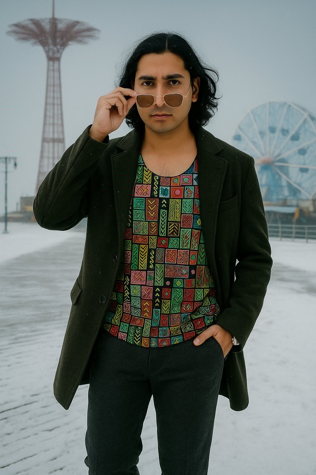 - Pattern placement may vary per garment, creating unique pieces for each client.